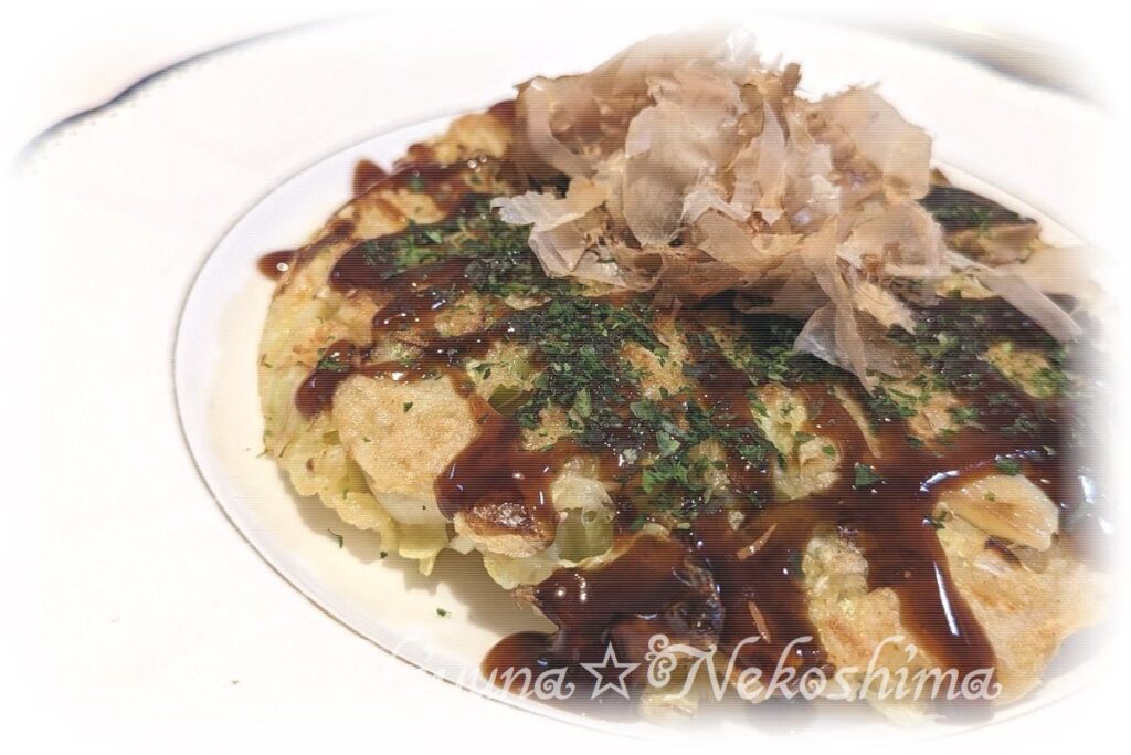 ※ チーズの場合は、生地を持ち上げ、鉄板にピザ用チーズを敷き、上に裏返したお好み焼きを乗せて、チーズがパリパリになるまで焼く。
