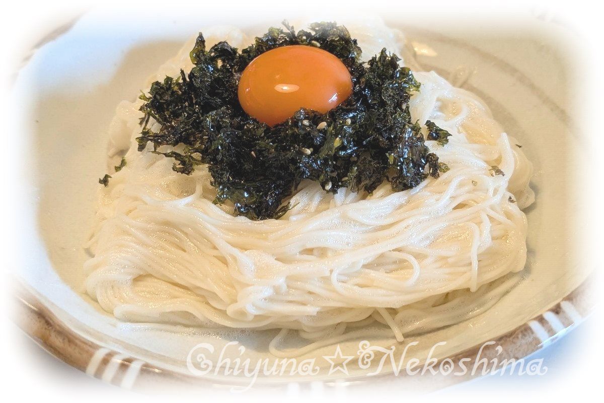 ③ ①の卵白と②のそうめんをよく混ぜ合わせ、皿に盛る。
