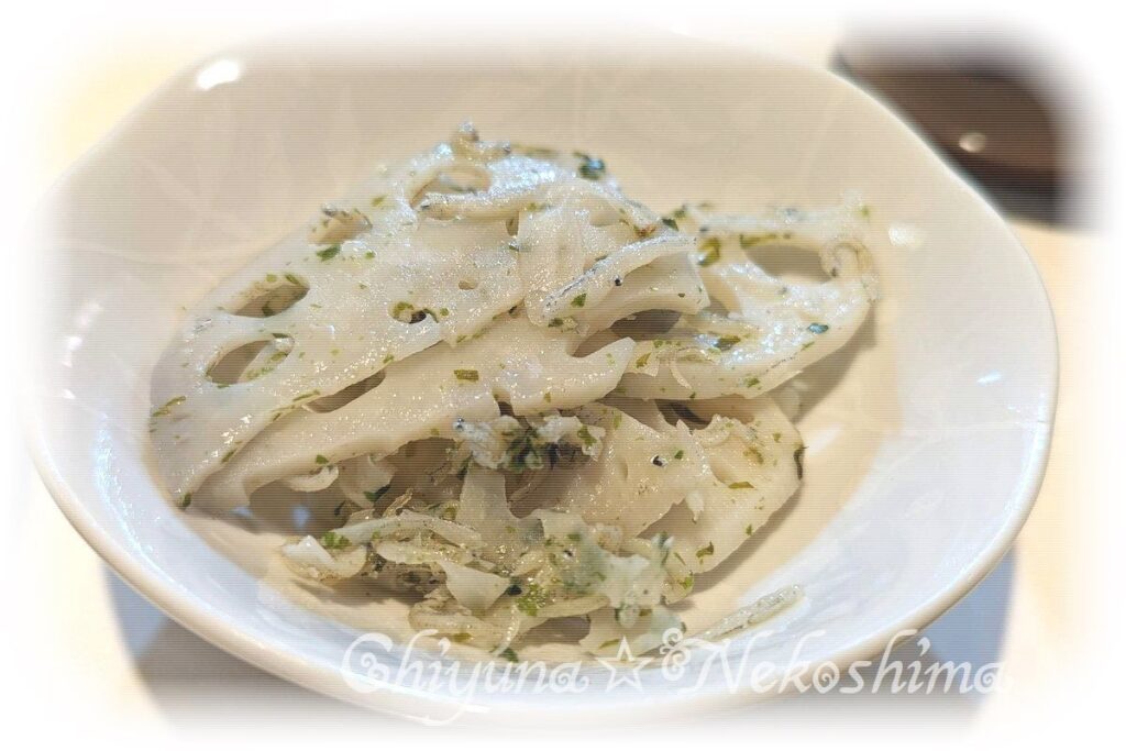 ① れんこんは5mm厚さの半月切り、大きければ、いちょう切りにする。