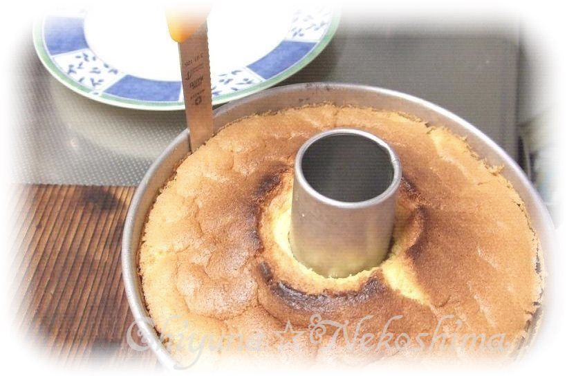 ⑬ 焼きあがったらオーブンから取り出し、逆さにして完全に冷ます。