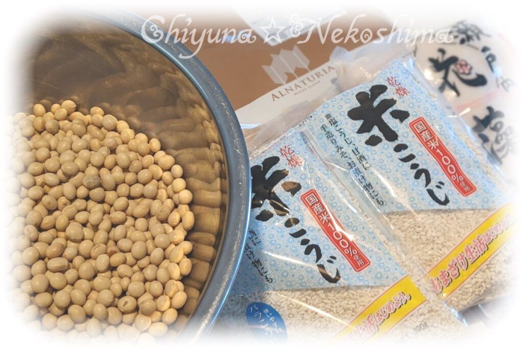 ① 大豆はよく洗い、水に24時間つけて戻す。途中、水が少なくなってきたら、大豆が浸るまで足す。